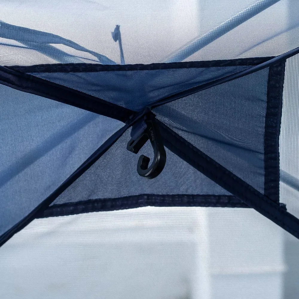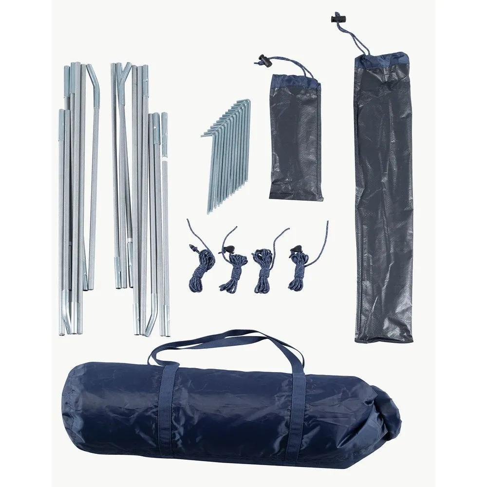 The raised entrance ensures that bugs and rainwater stay outside. The flysheet and inner tent are made from 100% recycled polyester made from PET bottles. The fibreglass poles (Dura-Poles) are much more resistant to breakage than conventional fibreglass poles, yet still very flexible. There are two protected permanent vents in the roof with spacer function, so you always have fresh air inside the tent. There is also a hanging function for a lamp inside the dome. The sleeping cabin is equipped with practical pockets so that you can easily store your mobile phone, for example.