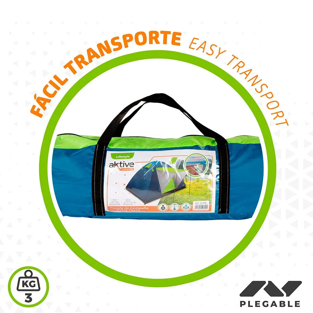 It has a double roof with ventilation panels to protect against condensation, a double door with zip and a mosquito net that also favours ventilation and protects against insects.