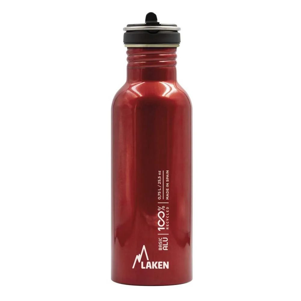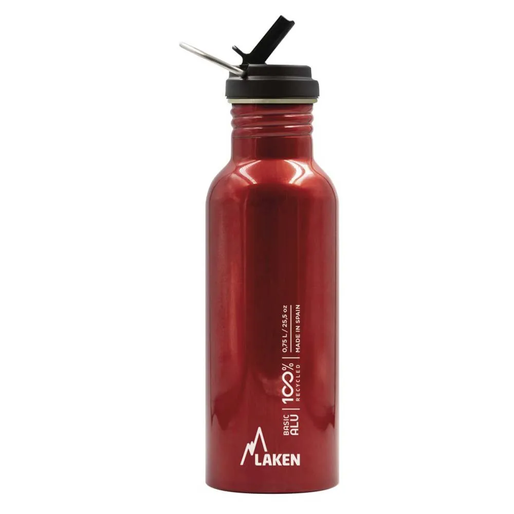 Reusable bottle made of 100% recycled aluminum, with wide mouth and Flow cap, with foldable spout, a handle that acts as a closure and straw.