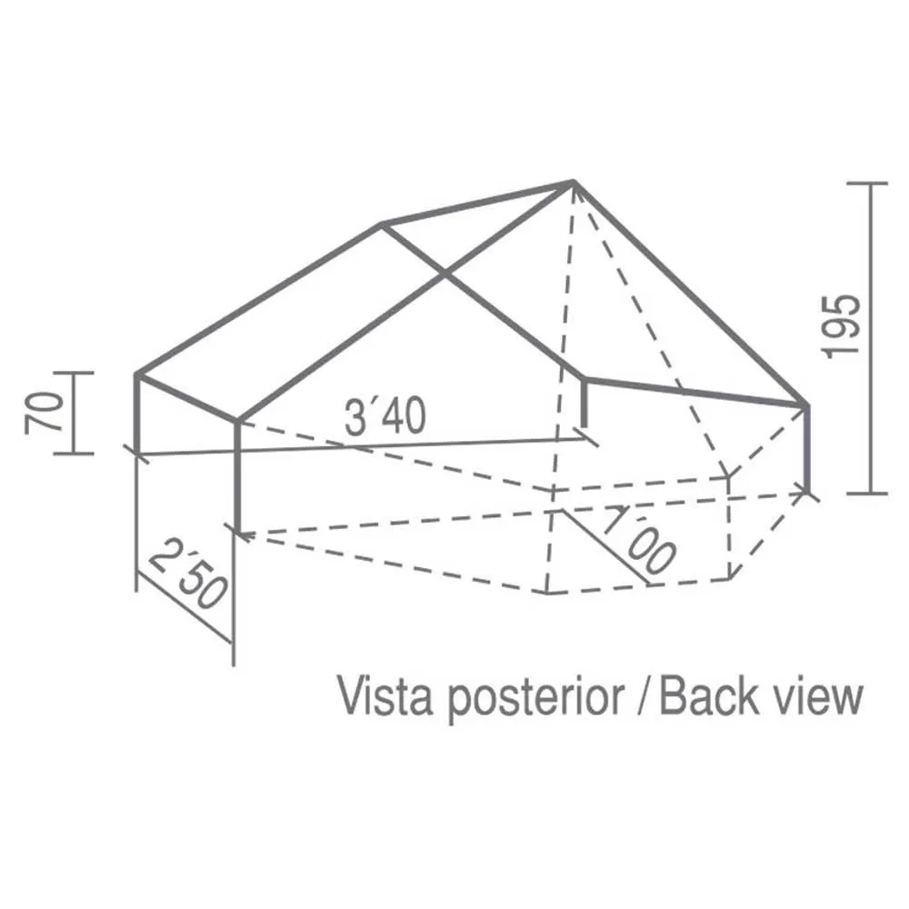 Canadian-style tent, made of 100% cotton and Polyester, with PU coating and hydrofuge treatment.