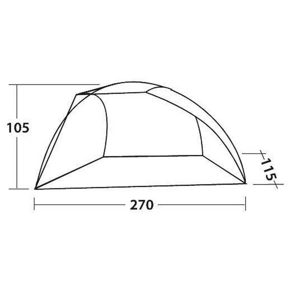 This is a single-skin structure that nevertheless provides important protection from sun, wind and even light rainfall – especially useful for very young children. A half-dome design in warm colours with integral groundsheet and carrybag with handles.