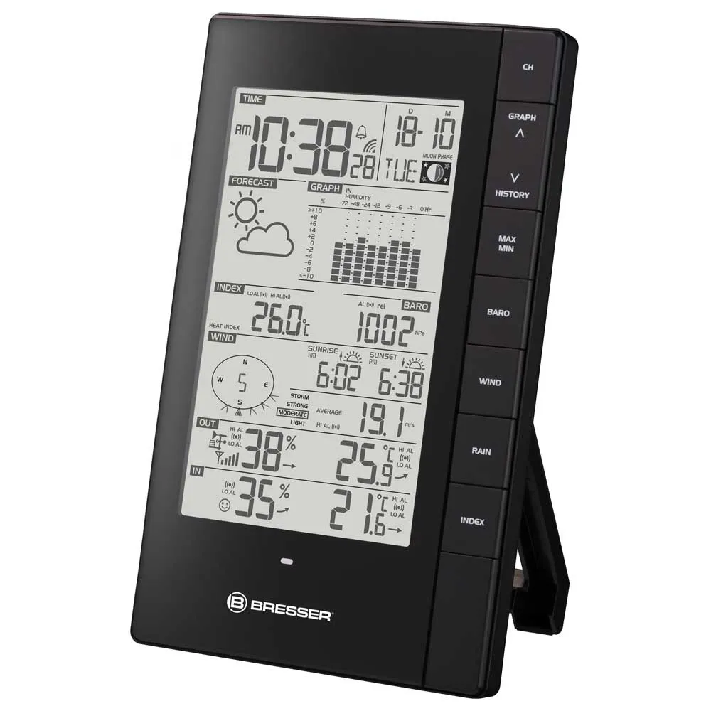 This BRESSER PC Weather station with 5-in-1 outdoor sensor offers you comprehensive weather information, which can be shared via PC software on apps. You also have the option to use the PC time synchronization and export data by USB cable.