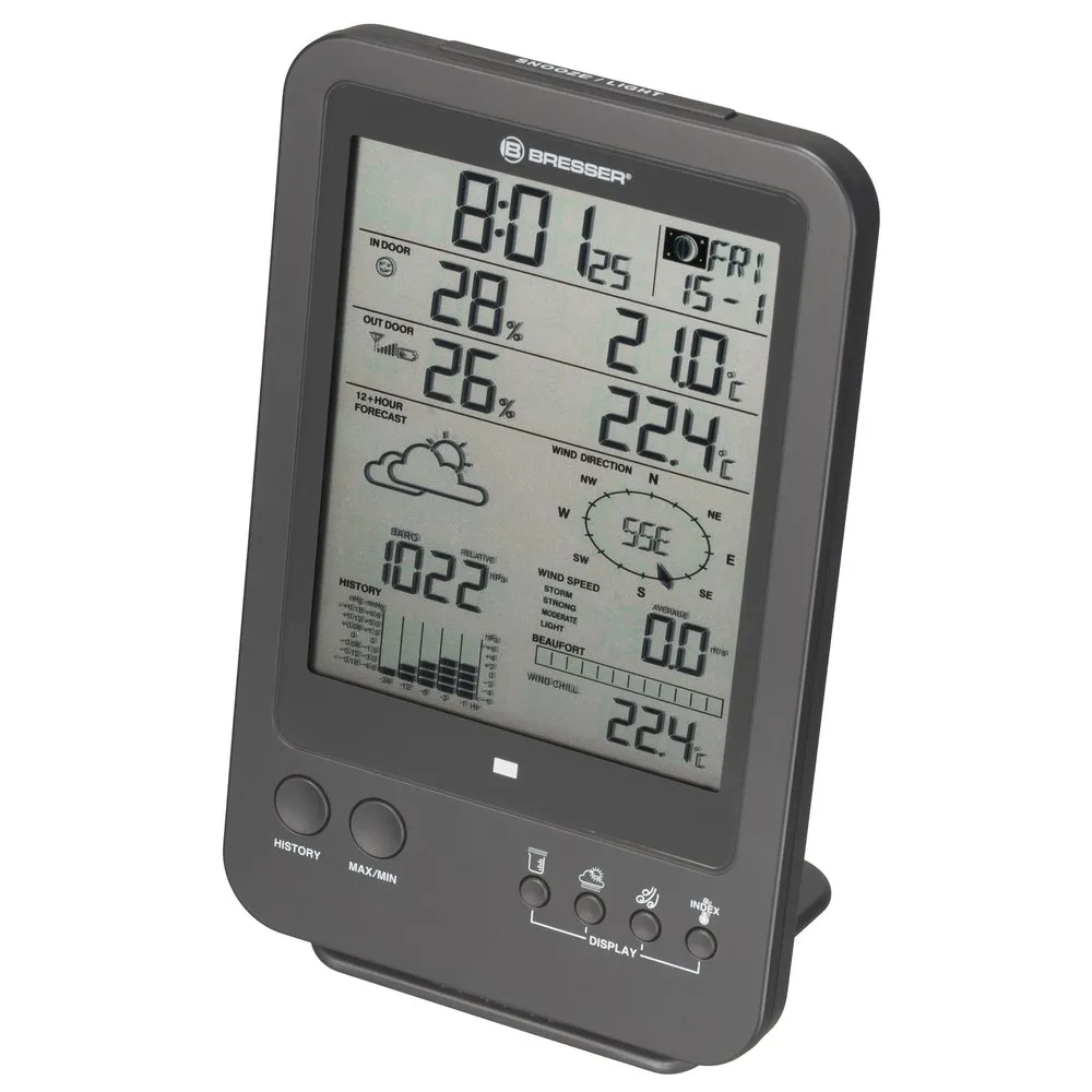 Offering a full range of functions, the additional base station is ideal for use in the bedroom. It features a built-in alarm and snooze function that mutes the alarm for 5 minutes. The display also shows the graphical weather trend and perceived temperature using the readings from the sensor (not included). Based on this data, you can then decide what to wear for the day. Featuring a built-in backlight that can be switched on and off, the display also shows the other data from your 5-in-1 outdoor sensor (not included). This include the wind speed, wind direction, humidity, temperature and precipitation, as well the heat index, dew point, Beaufort scale and historical data. Great feature for frosty days: The base station also has an ice warning function that sounds the alarm 30 minutes earlier when the temperature drops below -3 °C.