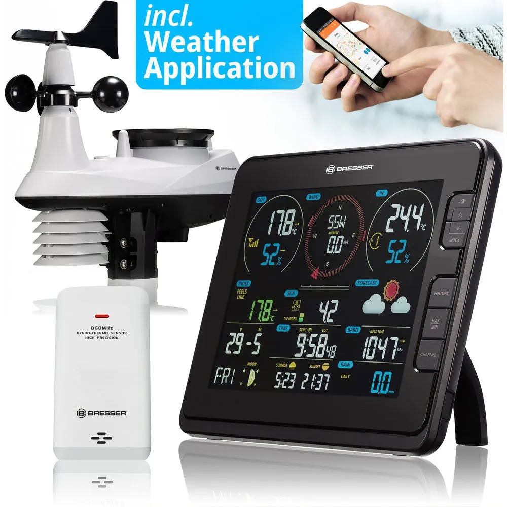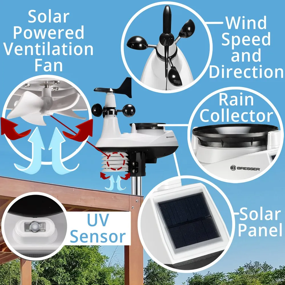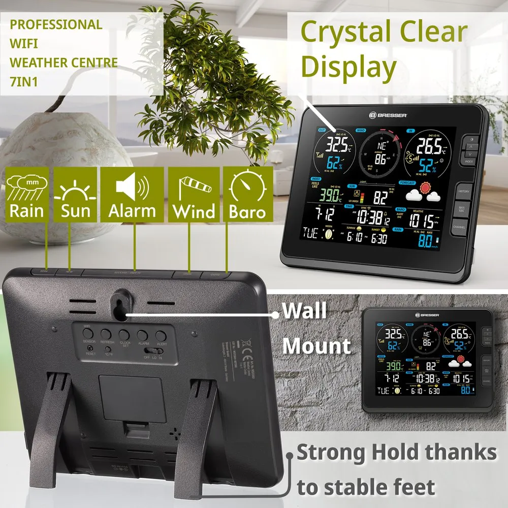 Compared with the Professional 6-in-1 Wi-Fi weather centre (item no. 7002540000000), the new BRESSER Professional 7-in-1 Wi-Fi weather centre has a new light intensity measurement function.