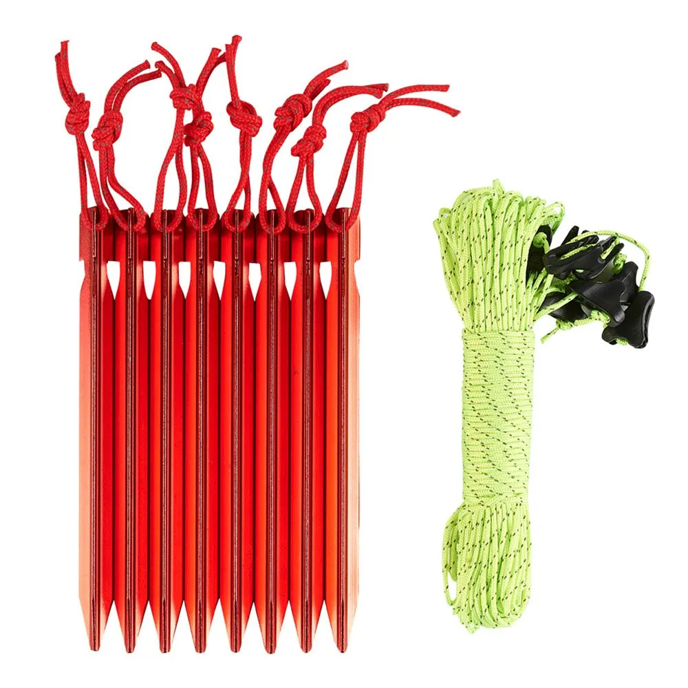 includes 8 relective guy ropes and 8 ultra light pegs in aluminium.