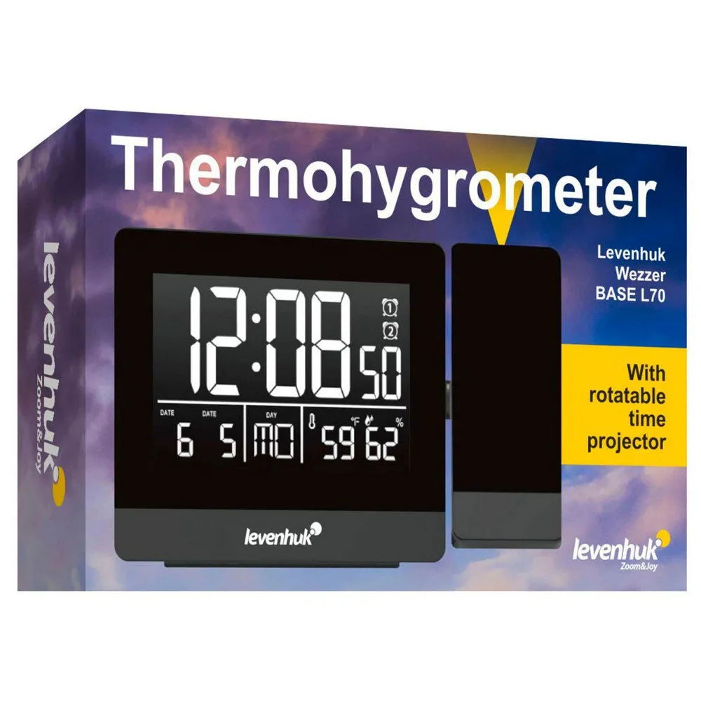 The Levenhuk Wezzer BASE L70 clock thermometer with projector is a stylish multifunctional device for your home that will enhance any interior. With this device you can check the time, the room temperature and the humidity. The digits of the time are projected onto the wall or ceiling in a rotating manner. This is very practical when you are getting ready to go out: you don´t have to constantly check the time on your smartphone screen.