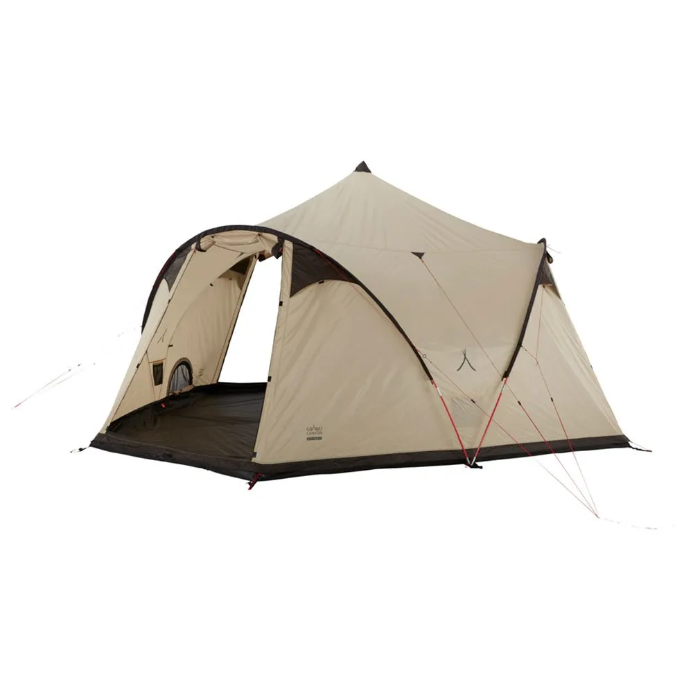 – The large entrances offer great versatility and can be opened simultaneously to turn the tent into an open sun shelter throughout the day.