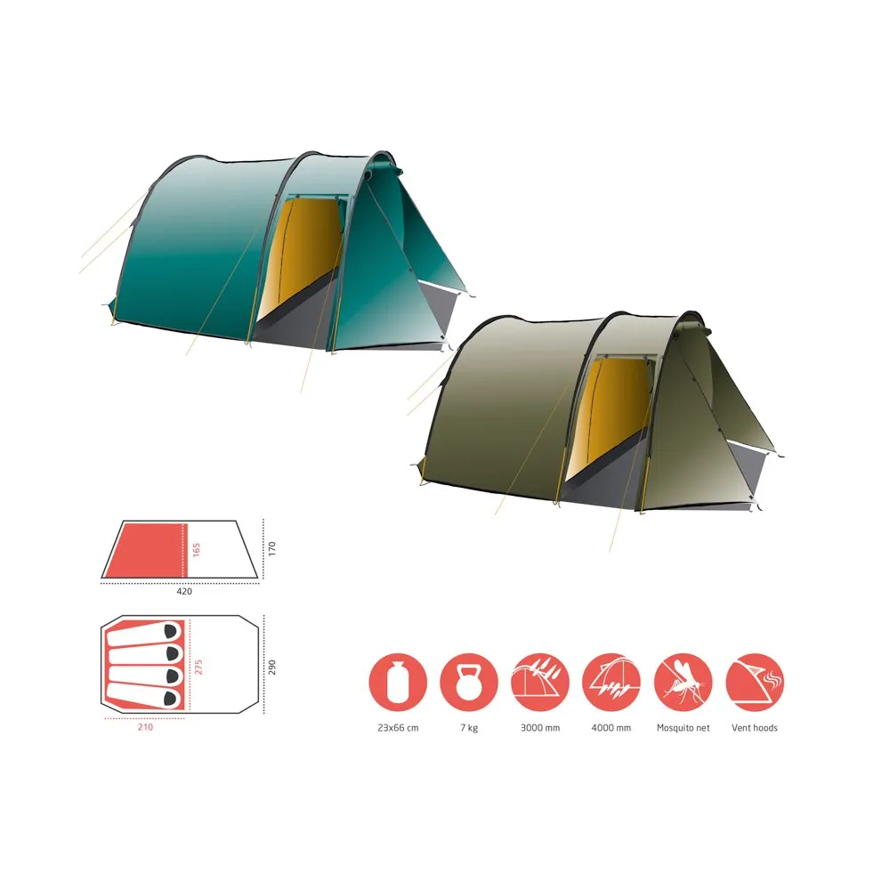– Mosquito net inserts on the inner tent and big vent hoods on the fly sheet provide best ventilation and a comfortable inner tent climate at any time.