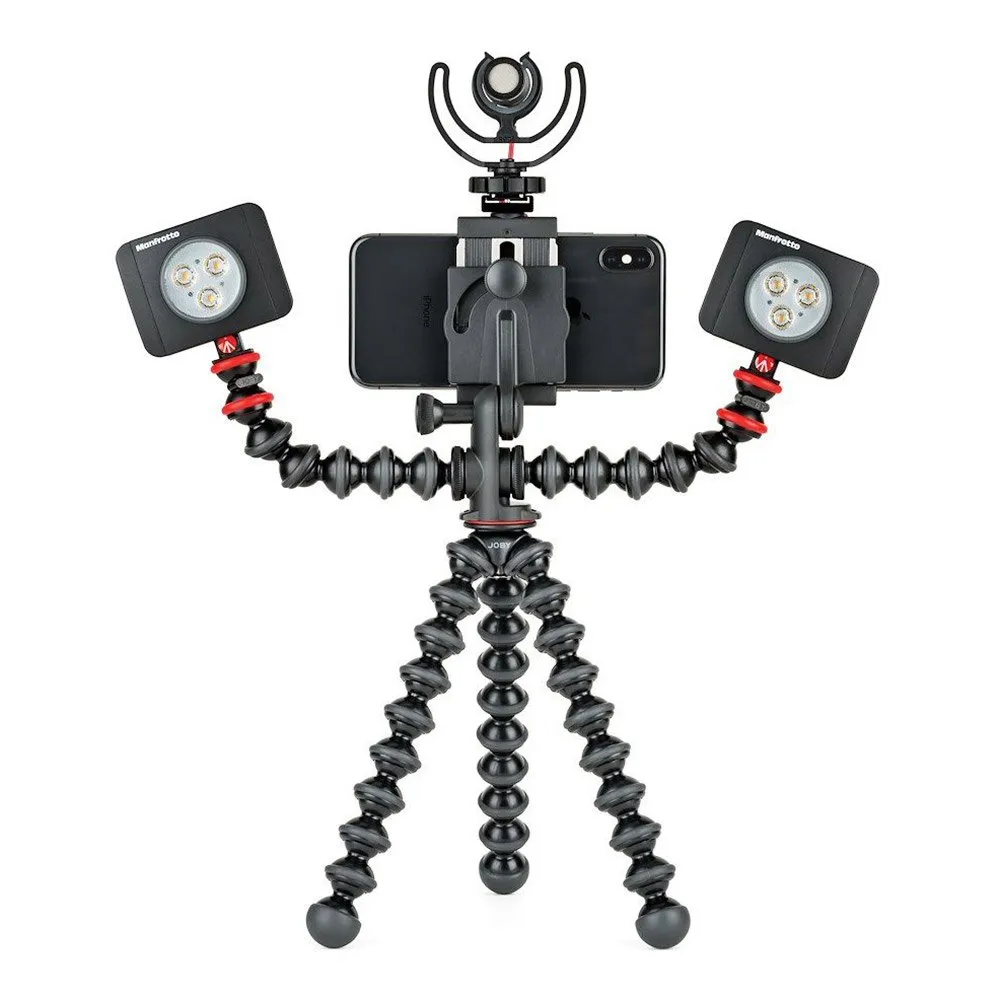 Lights, Camera, GorillaPod! Create pro-grade videos, vlogs and YouTube® content with this smartphone rig designed for content creators. Flexible, portable and easy to use, the new GorillaPod Mobile Rig securely mounts your smartphone, lights and mics.