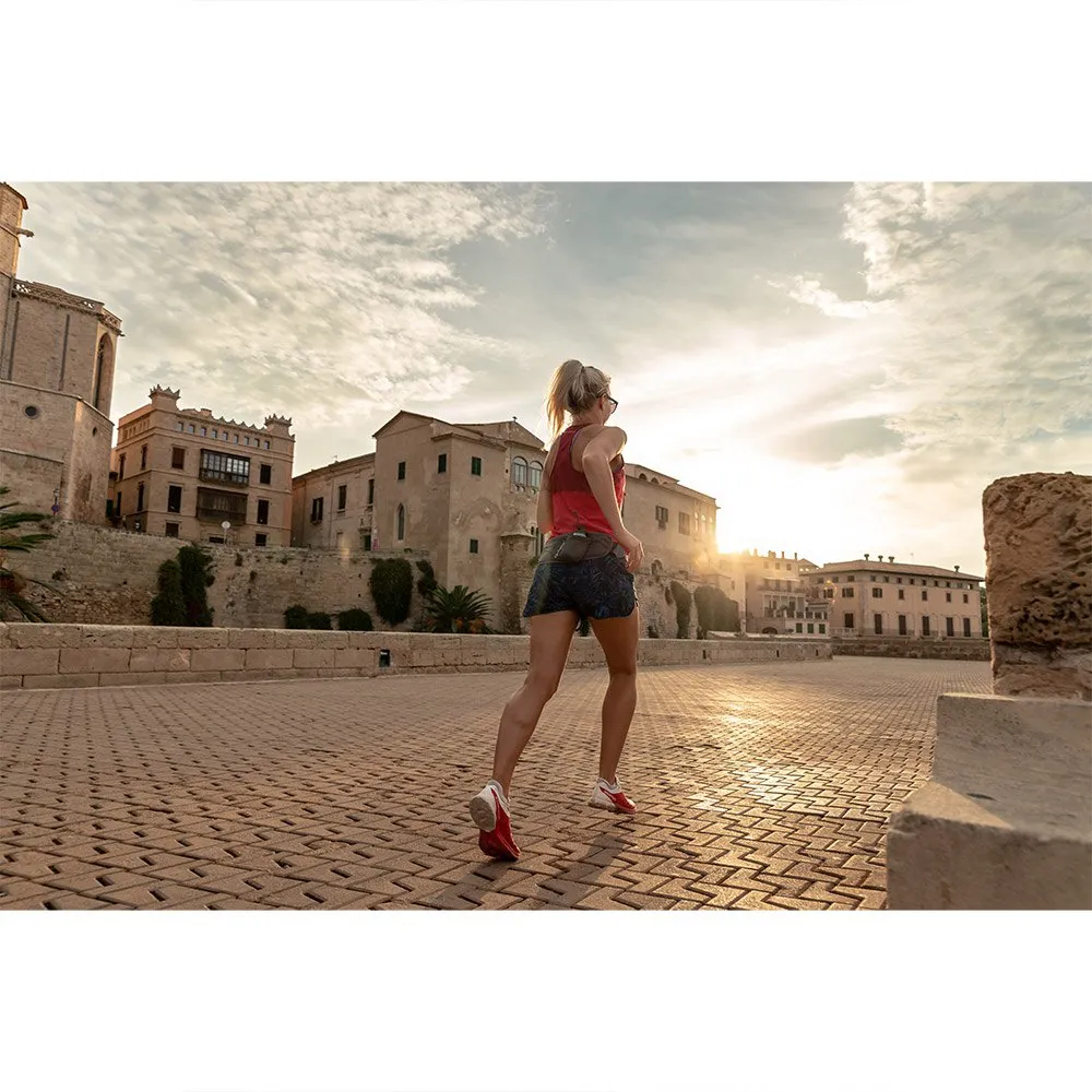 Keep water within easy reach while you run with this lightweight running hydration belt with compact 285ml water bottle. Weighing just 140g, it is made using rip stop Cordura fabric and features a zipped main compartment with two internal stretch mesh pockets and a quick-access front stash pocket to organise your essentials. The mesh back and adjustable waist belt ensure a comfortable fit for every runner.