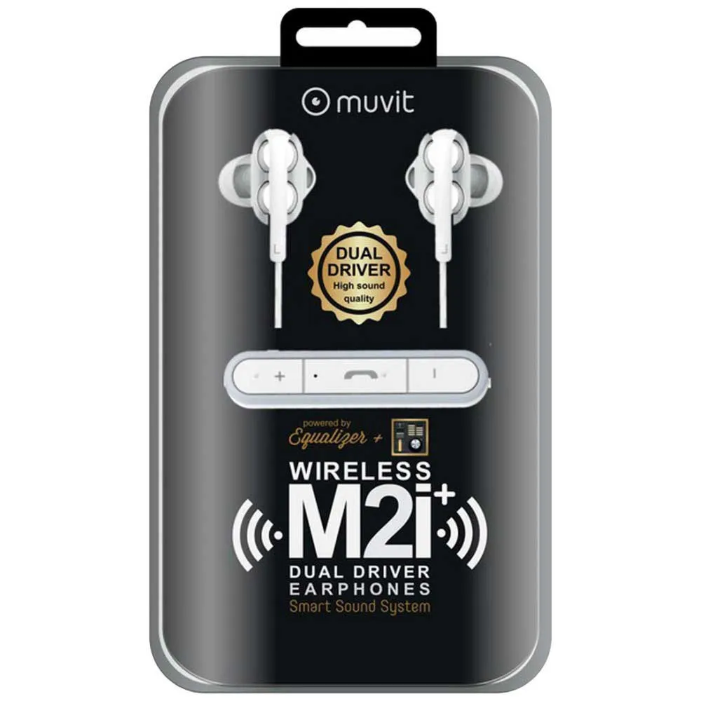 The M2i + wireless tooth headset with dual driver system muvit incorporate an intelligent sound system to discover the purest sound.