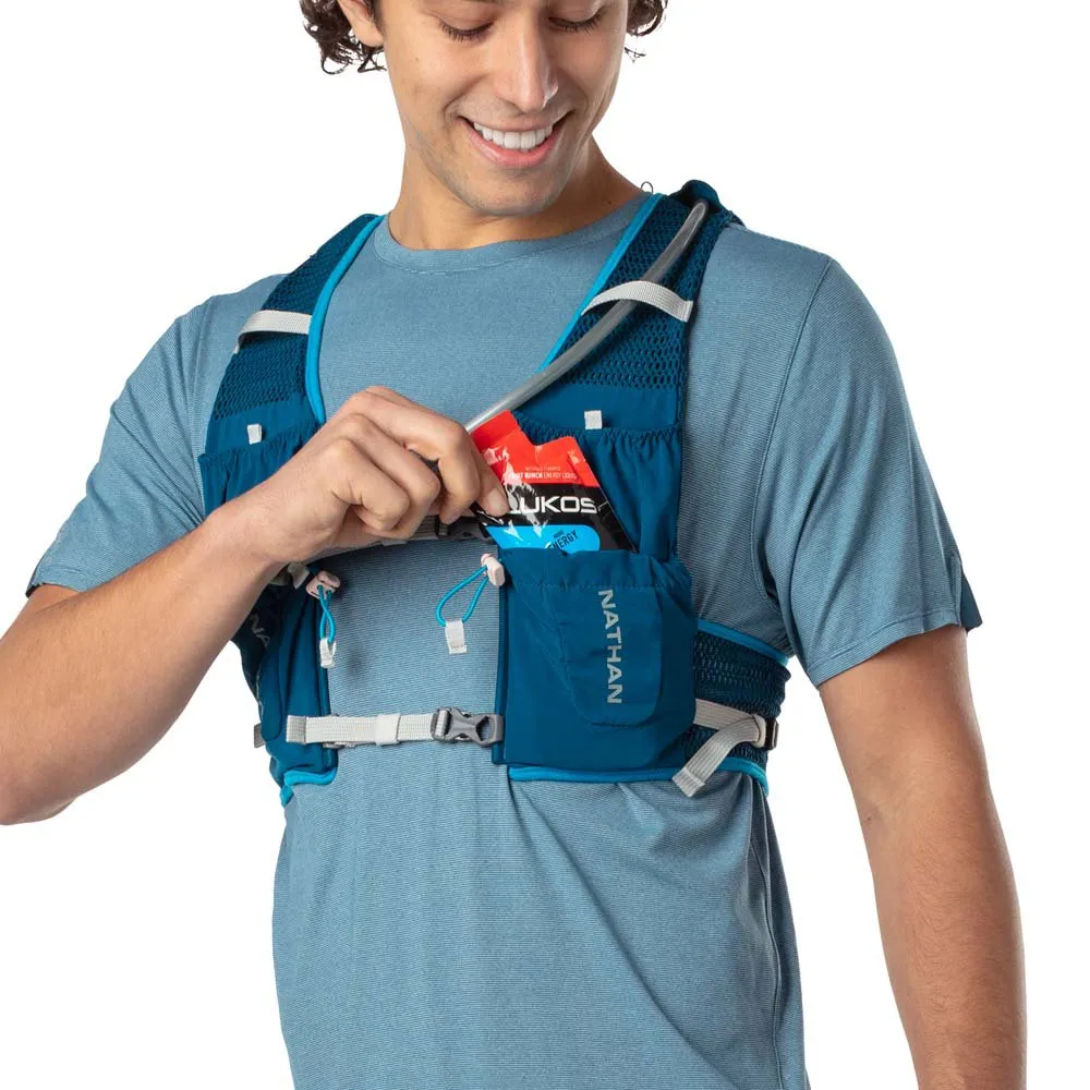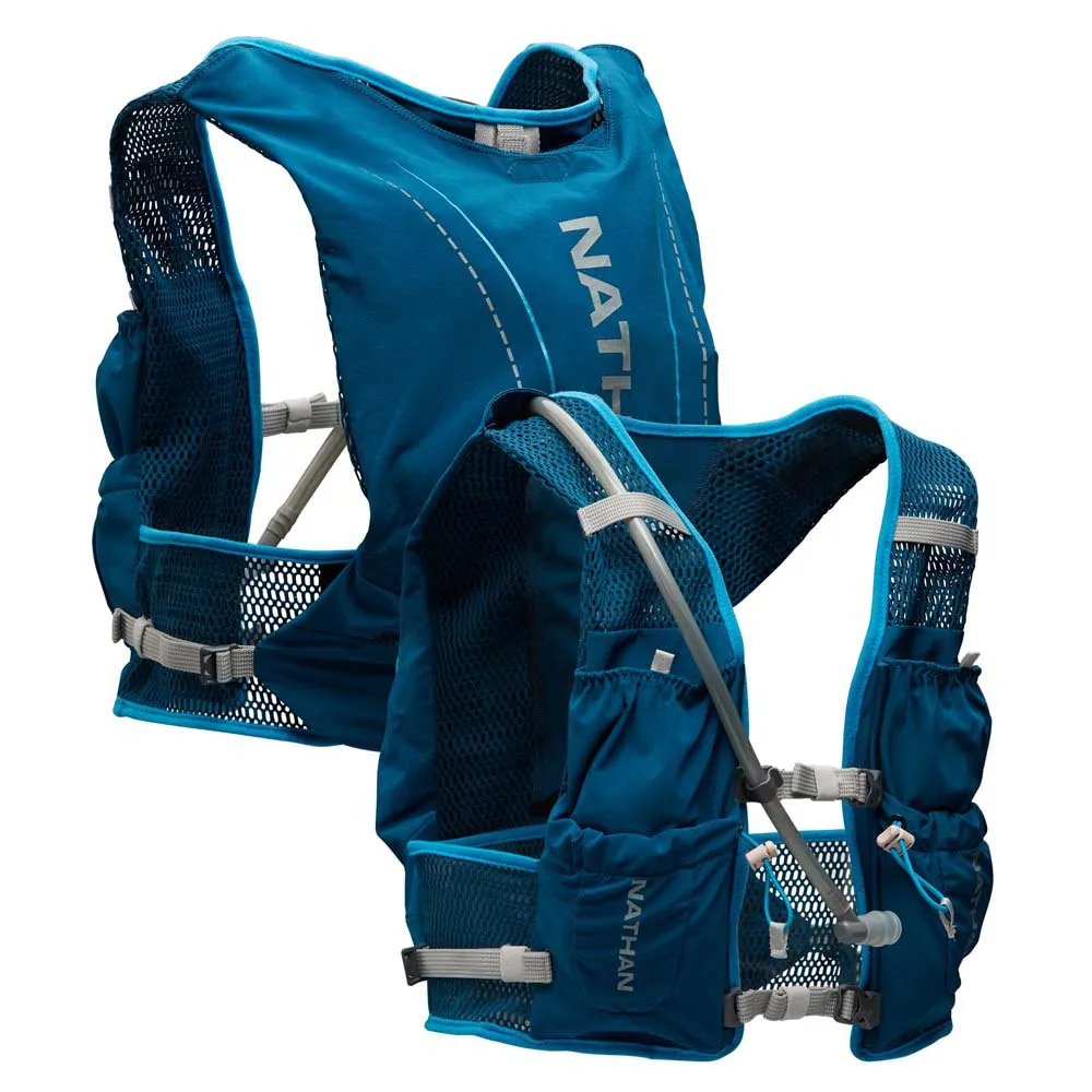 Looking for a hydration vest that will keep you refreshed and comfortable during your intense workouts or long-distance runs? Look no further than the NATHAN Vapor Air 2 Lite 7L Hydration Vest in Marine Blue/Vapor Grey!This vest is packed with cutting-edge features to ensure that you stay hydrated and comfortable throughout your workout. It includes a 2-liter hydration bladder, allowing you to stay hydrated for up to 2 hours without having to stop and refill. The vest is also constructed with breathable and lightweight materials, keeping you cool and comfortable even on the hottest days.The NATHAN Vapor Air 2 Lite 7L Hydration Vest also includes plenty of storage space for your essentials. With multiple pockets and compartments, you can bring along everything you need, from your phone and keys to extra snacks and clothing.So why wait? Invest in the NATHAN Vapor Air 2 Lite 7L Hydration Vest today and take your workouts to the next level!