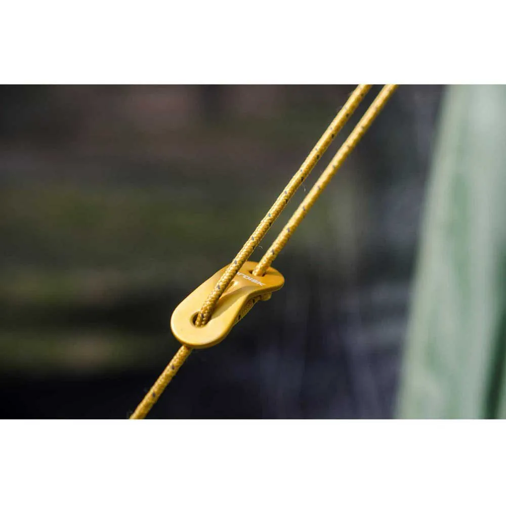 The peanut aluminium slider is easy to operate and offers a very strong grip to the guy rope. The simple design and construction allows the slider to easily lock any guy rope up to 4mm, in place. Furthermore, it is super-strong to withstand high tension and still easy to unlock and slide up or down. The colour is very visible and the shape is smooth and with no hard edges.