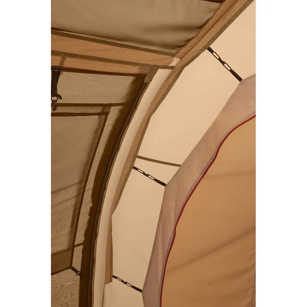 With its color coded pole channels the Reisa is very easy to pitch, and both the front and side doors can be fully opened and used as canopies with the included extra poles. Both doors are double layered with No-See-Um Mesh, keeping insects out, and windows with integrated roll-up curtains. The included groundsheet for the center porch provides a great living area – and the storage pocket wall inside makes Reisa 4 great for families with kids or anyone, who need some easily accessible storage space.
