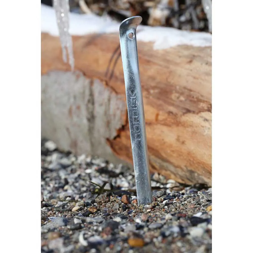 A sturdy classic V-shaped steel peg with great strength. The V-shaped steel peg is a classic, offering great versatility, which is why it has been chosen as the standard peg for all Nordisk Legacy tents. The V-construction offers a firm grip and the choice of 2mm thick steel guarantees strength and performance. The steel V-peg works well in most kinds of soils including loose, firm, hard and even sandy ground, where the shovel-like design makes it easy to peg it into the ground, while at the same time offering a strong grip. Finally, the steel V-peg is equipped with a bent head, which offers a firm hold of a wide range of guy ropes.