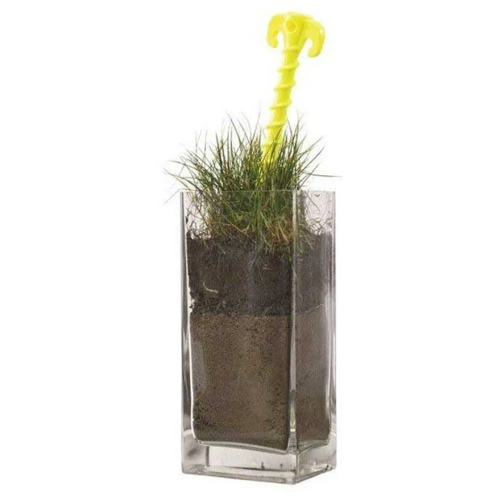The Screw Plastic Peg is screwed into the ground without the need of a hammer.