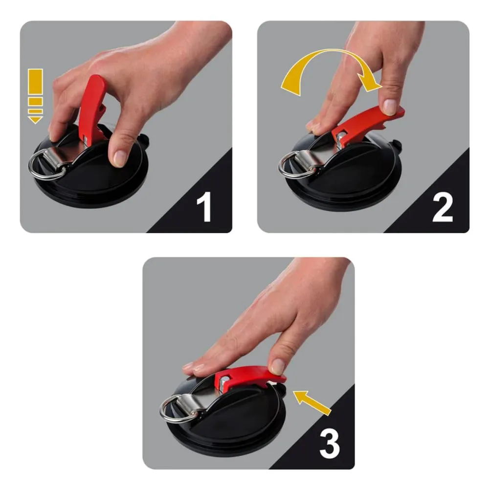 The suction cup fastener with ring and 2 S-hooks 758082 from ProPlus is easily attached to level, dry surfaces, and can be used to mount an awning to your van or caravan.