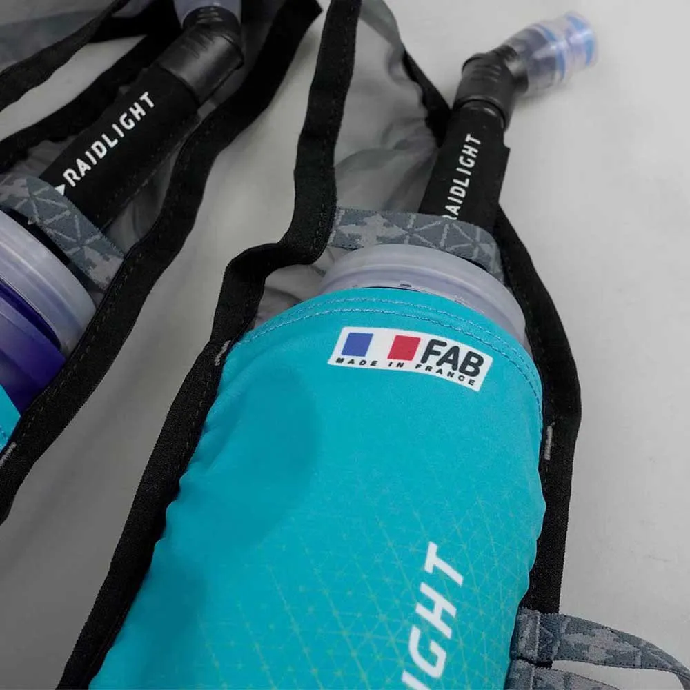 Radical lightweight Race Vest. 70g for a 3 litre vest makes this the lightest race vest on the market. Vest harness made from PolyMono material for excellent breathability and temperature regulation. This is an ultralight monofilament mesh, non absorbent, low stretch, conforms to shape and spreads load effectively. The pocket storage system uses Payen fabric, giving high tenacity stretch and super fast drying for stability and comfort. For storage you have a 2 litre zipped rear pocket and on the front there are 2 zipped pockets and 2 bottle pockets. This is the ultimate in lightweight race vests with no unnecessary additional features. We have not put our popular micrometric dial adjusters on this race vest to save weight, all fit adjustment is on the 2 front elastic straps.