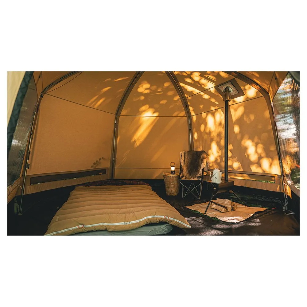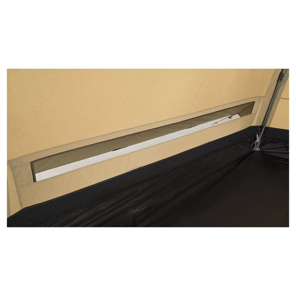 HydroTex® Polycotton RS fabric and superlative ventilation, plus large windows, keep the spacious inside bright and airy while a flue outlet and zipped groundsheet allow the use of a stove.