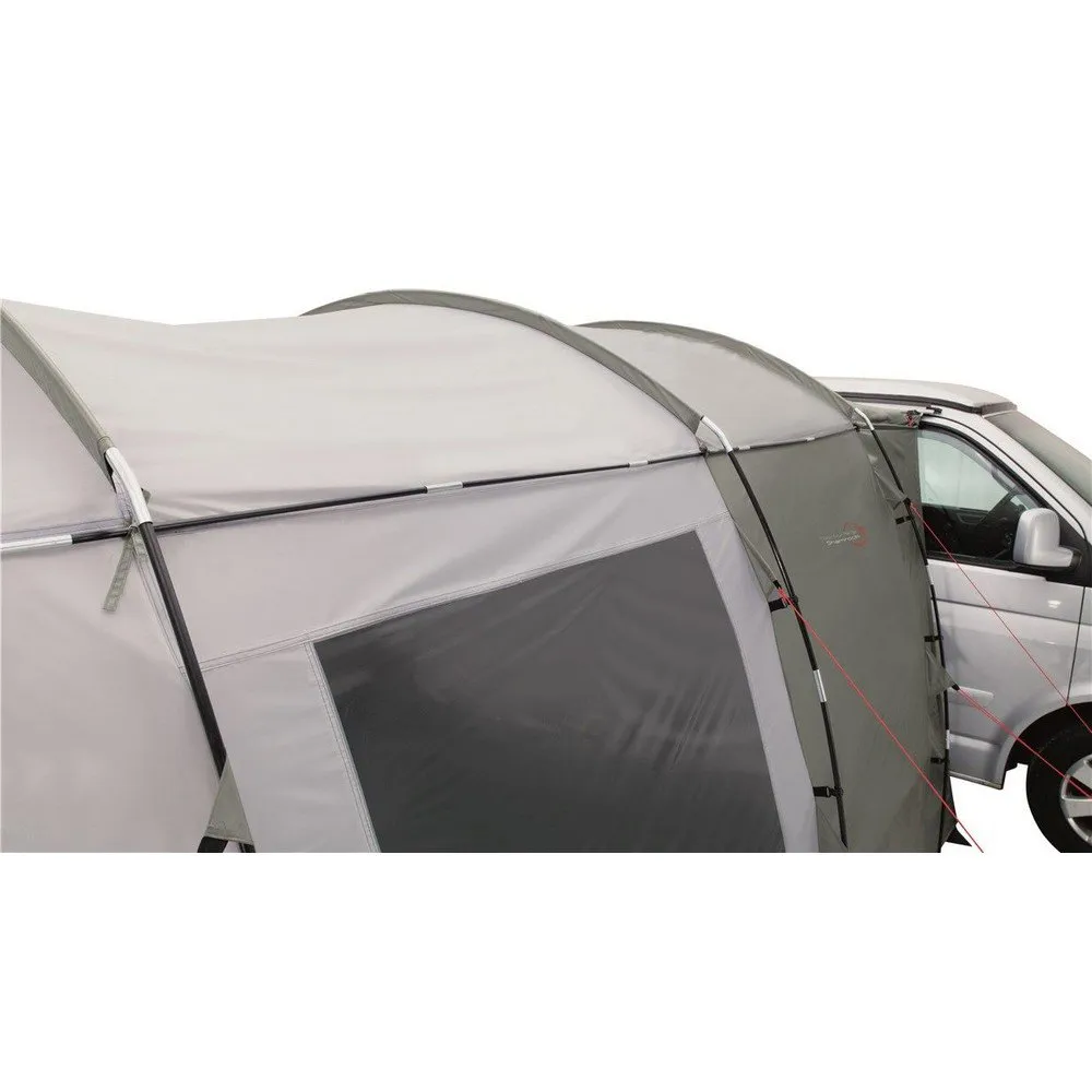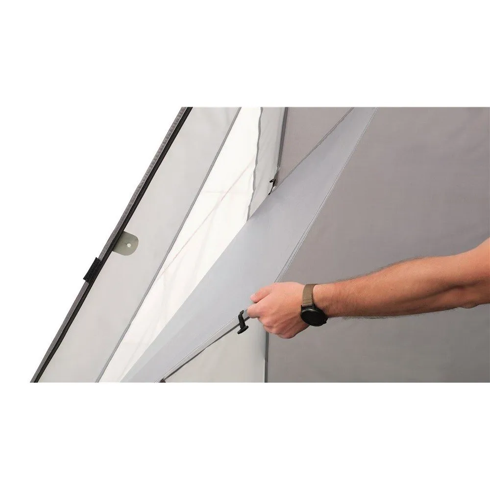 A versatile drive-away awning, Shamrock has pre-angled fibreglass poles plus exterior steel poles for stability and tent fabric tension.