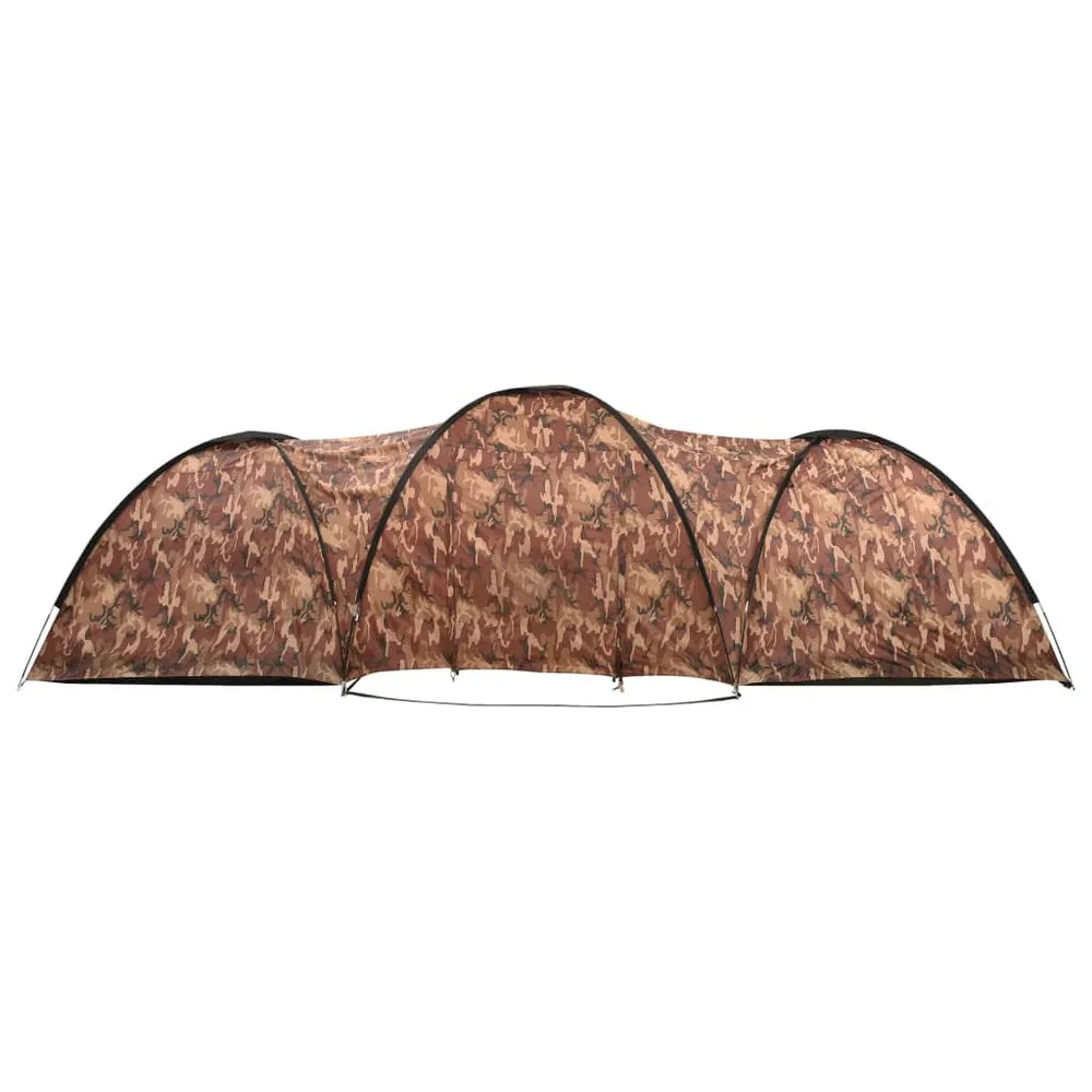This camping tent has spacious room for up to 8 people with luggage. It is perfect for family camp out with kiddos or weekend away with friends. This tent canopy is made of breathable 180 T polyester fabric with PA coating, which helps block most harmful rays. Against dirt and rising soil moisture, the oxford fabric floor film in the interior is sewn tightly to the tent. Its sturdy fiberglass frame ensures stability and durability. Both sides with mesh windows ensure fresh air in and keep bugs out. Zippered doors allow you easily in and out. It also includes anchor pegs for enhanced stability in strong wind. The included travel bag is for easy transport and storage. Colour: Camouflage Material: Fabric (100% polyester) with PA coating, fiberglass Dimensions: 650 x 240 x 190 cm (L x W x H) Accommodate up to 8 people Breathable and well air ventilation Zippered door and mesh windows Weight: 8,7 kg Assembly required: Yes Delivery contains: 1 x Igloo camp tent 33 x Peg 14 x Rope
